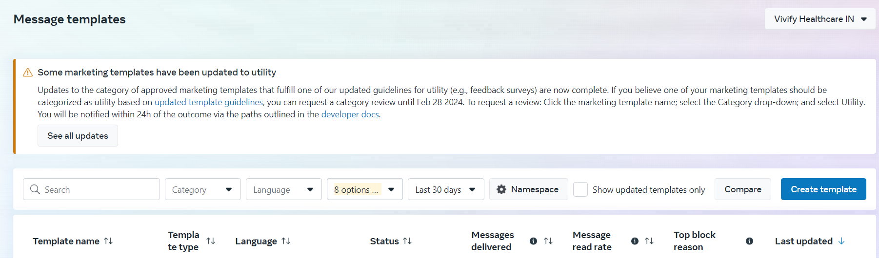 Clicking on “Message Templates” will navigate to this page
